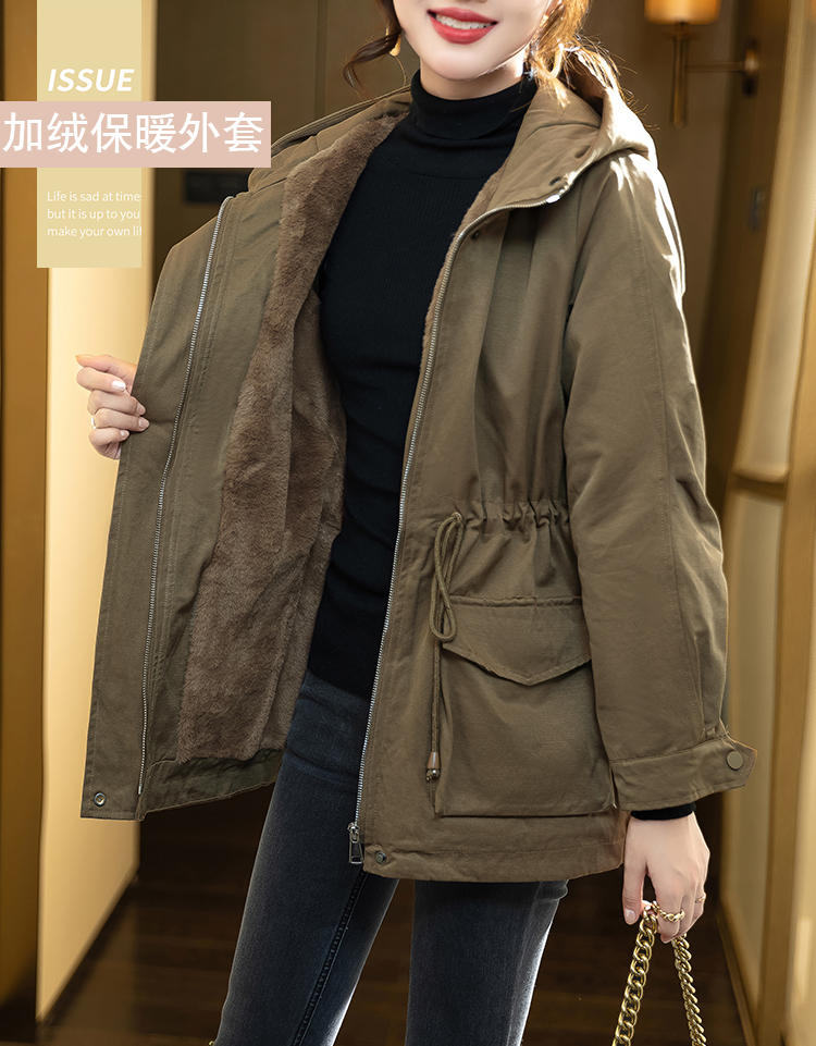 棉服女大码加绒加厚外套2023冬装新款派克服棉衣宽松胖mm女装棉袄的描述