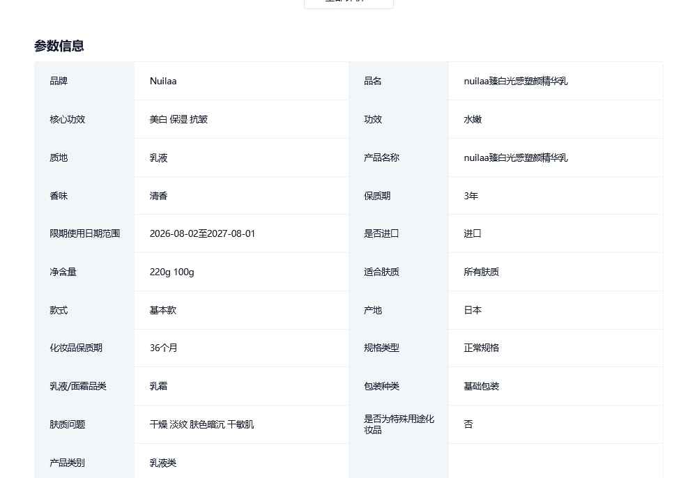 进口Nuilaa乳液保湿美白去黄补水提亮水乳紧致抗皱抗初老护肤品