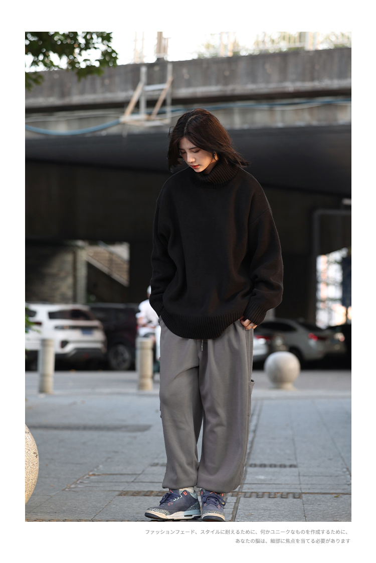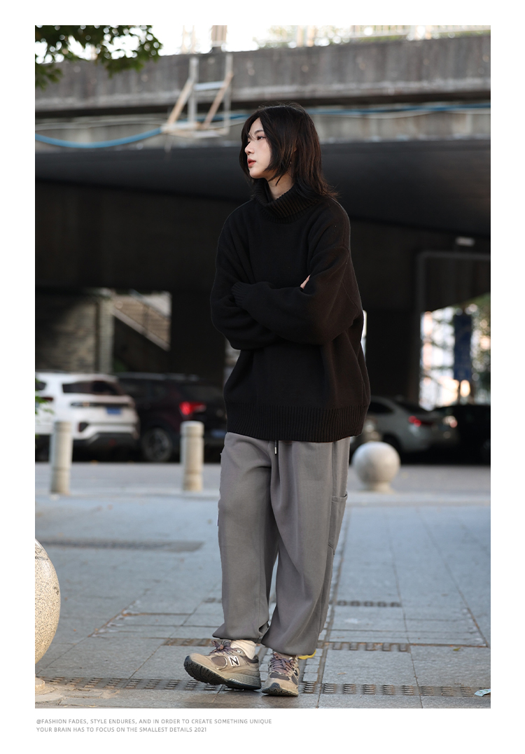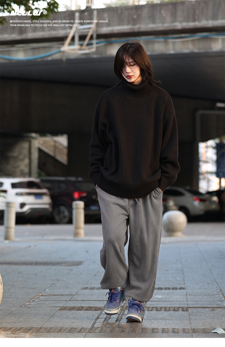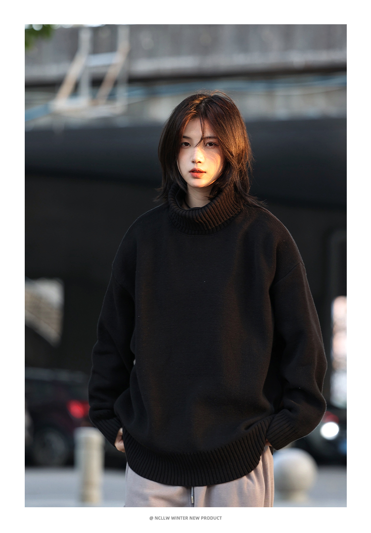 你初恋老王高领毛衣男针织打底衫长袖宽松复古纯色百搭情侣同款女