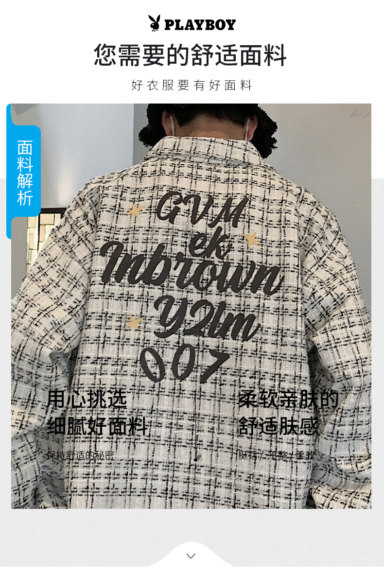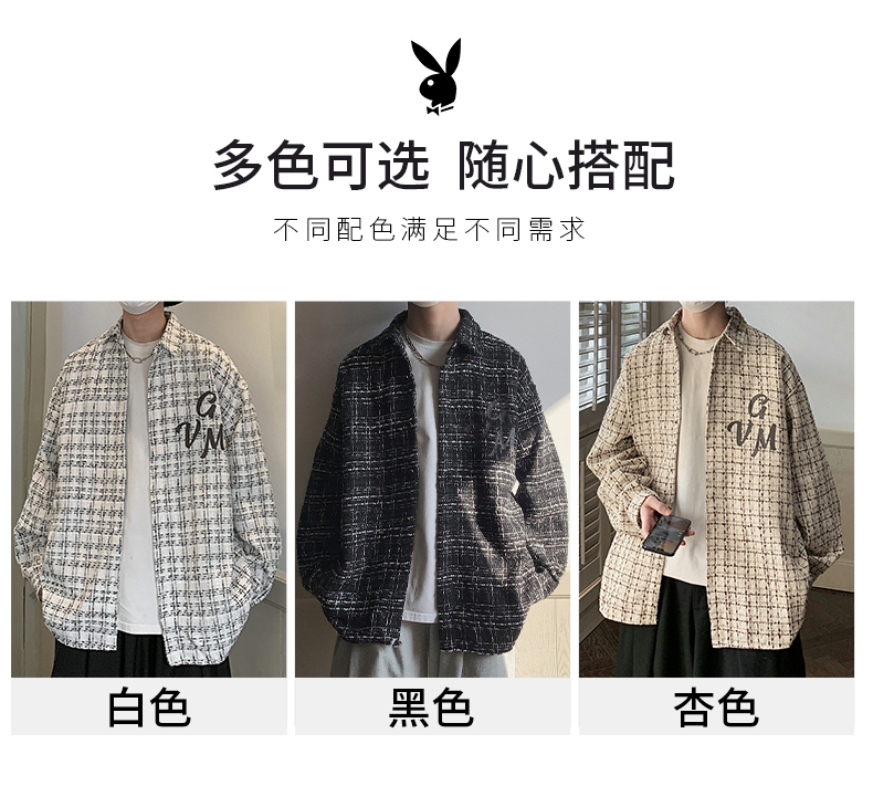 花花公子长袖衬衫男2023秋季潮牌宽松翻领衬衣男士休闲格子上衣服的描述