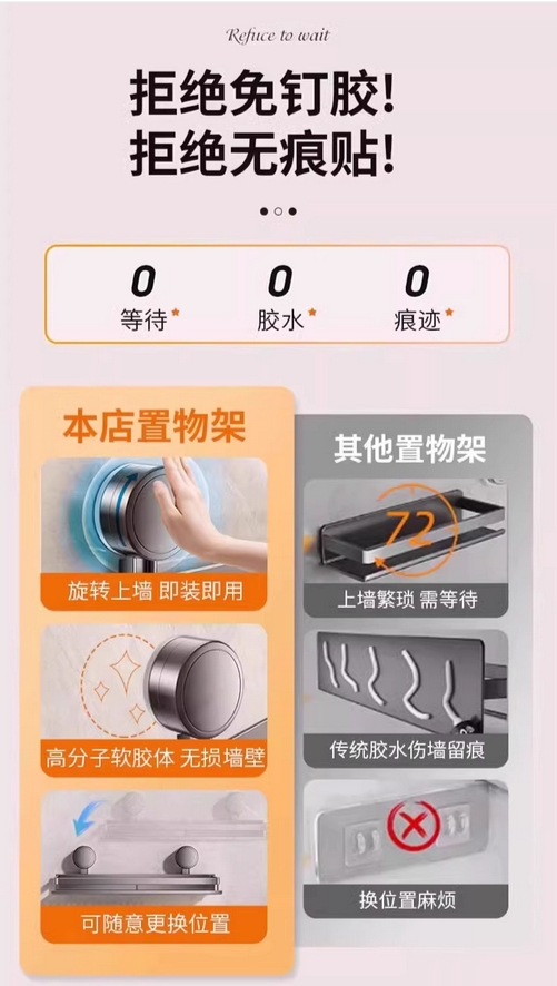 百悍吸盘置物架卫生间浴室免打孔神器厕所洗漱台洗手间挂墙上收纳的描述