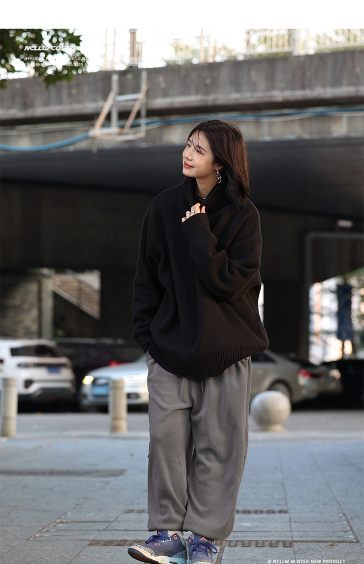 你初恋老王高领毛衣男针织打底衫长袖宽松复古纯色百搭情侣同款女