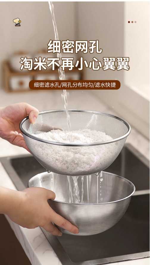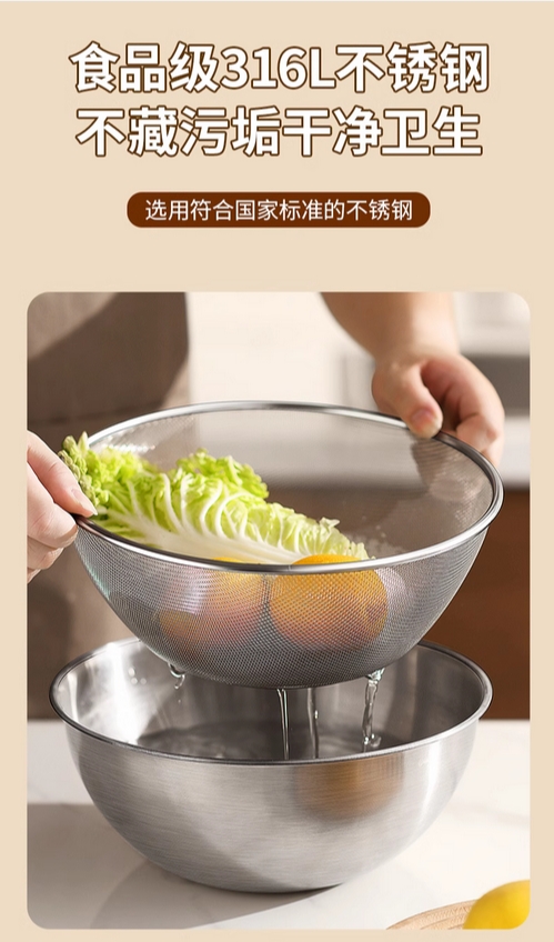 沥水篮316不锈钢洗菜盆洗米筛淘米盆厨房洗水果漏盆滤水淘米神器的描述